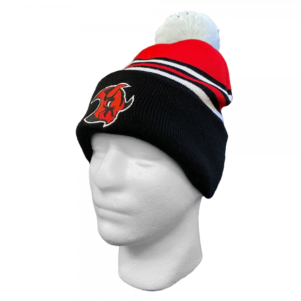 Bommelmütze mit Logo und Krempe